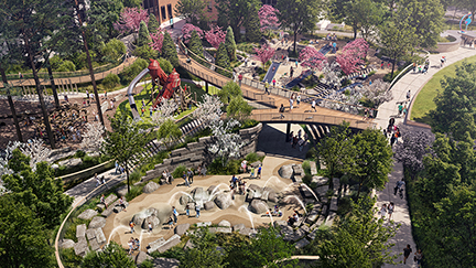 The plan aims to transform the space into a multiuse destination by breaking it into different unique sections including a botanical garden, sports fields, an amphitheater, water features, natural habitats for local flora and fauna and a cultural center and restaurant in the restored hospital buildings. Check out this video for more information.