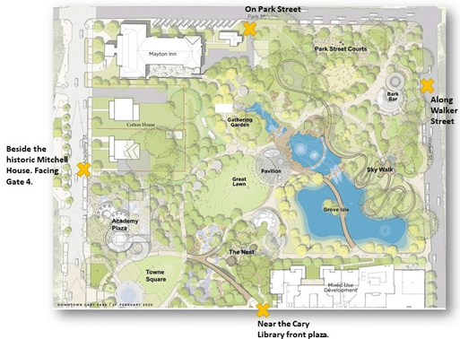 The first stage of the park, the fountain and plaza that borders Academy Street and the library, has already been completed and is open for visitors. Once the rest of the park is finished it will be a fantastic area for all sorts of activities right in the heart of Cary. The town plans to use the park for a variety of programing including art exhibitions, arts and crafts classes, performances and concerts, cardio and fitness classes, book clubs, story time programs and movies. The park is slated to fully open in the Summer of 2023 and anyone curious can also check out the 3D model plan in the library.