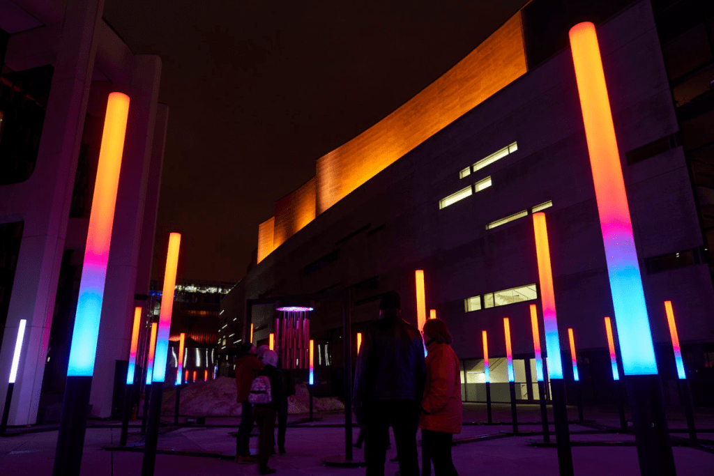 Parts of downtown have been transformed by large-scale, interactive art pieces scattered throughout the area. “Chimes” is an internationally recognized art piece that is featured at the event.