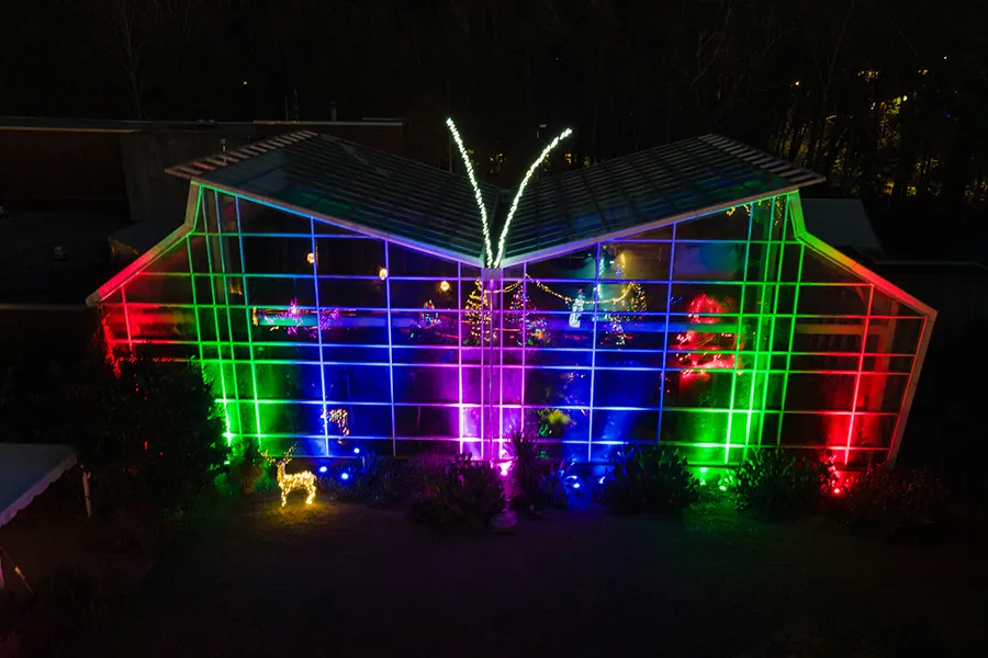 “Follow shimmering pathways and glowing trees through the garden, Farmyard, and Dinosaur Trail. Enjoy the tropical temperatures inside the Magic Wings Butterfly House or stop by Sprout Café for a night-time snack. Take an illuminating train ride on the Ellerbe Creek Railway, passing colorful light displays along the way!” The museum will be lit up with fantastic decorations for the holidays as it welcomes visitors of all ages.
